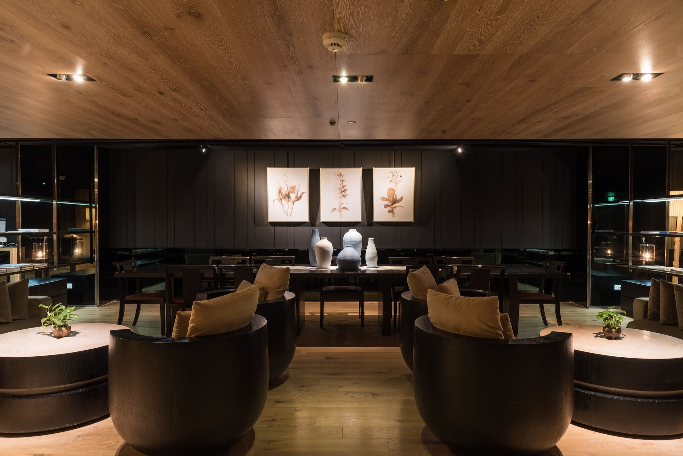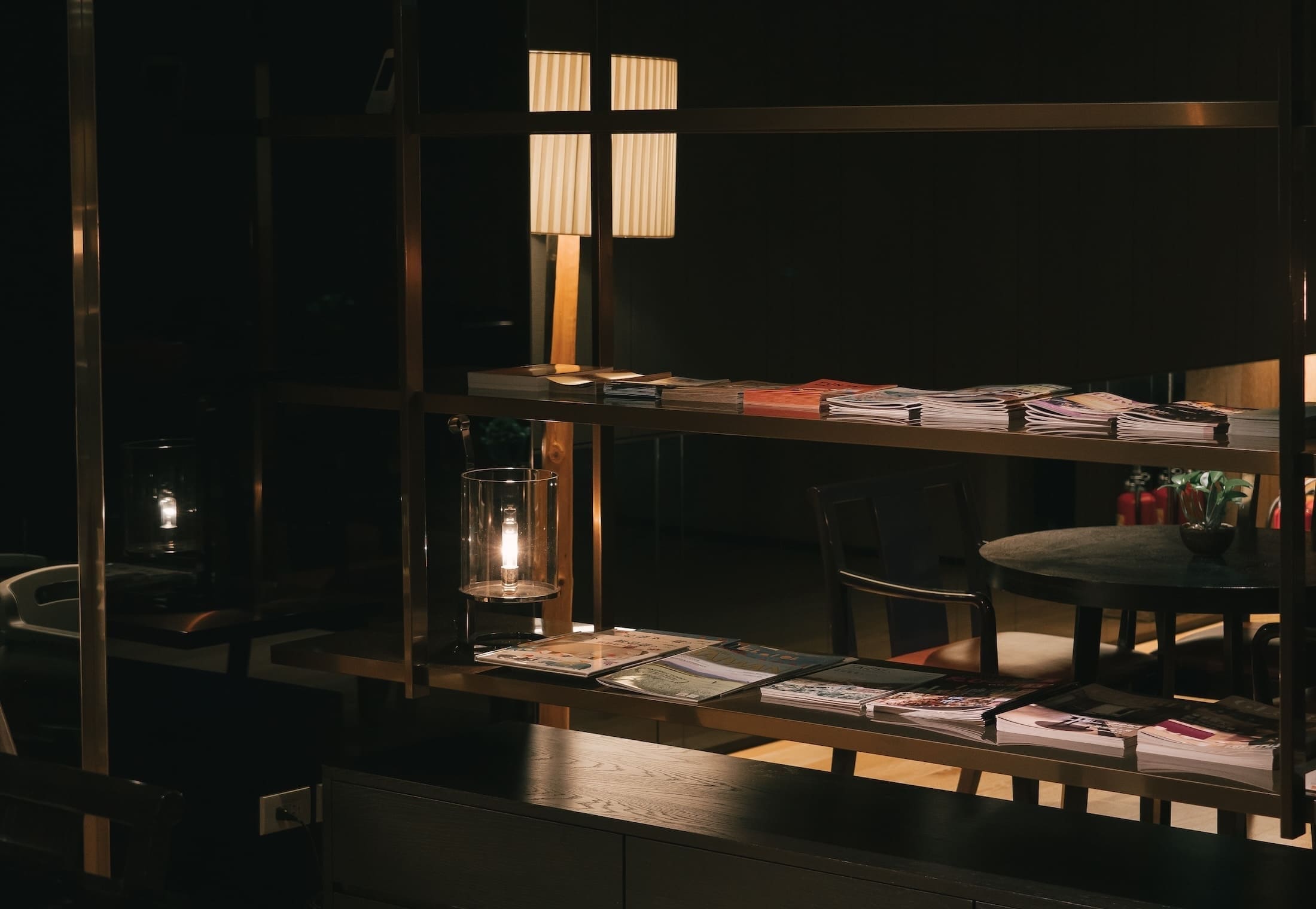 溫潤木質調與柔光氛圍,營造出如家般自在的舒適感,柔和的音樂在空間中流淌,氣氛靜謐而溫馨。